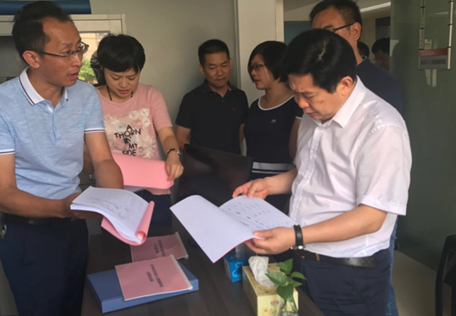 谢进一行查看社区资料台账。