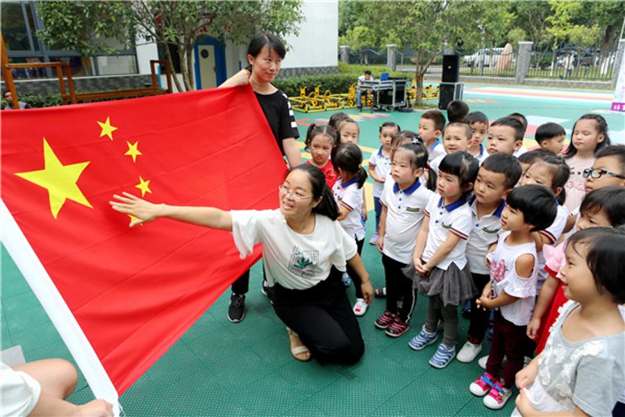 孩子们学习了解国旗知识