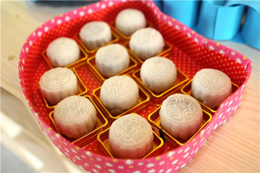 孩子们制作的“核心价值观”冰皮月饼礼盒