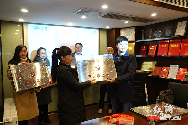 长沙市天心区裕南街街道工委委员、组织委员周彦为新成立的“两新”支部委员会授牌。