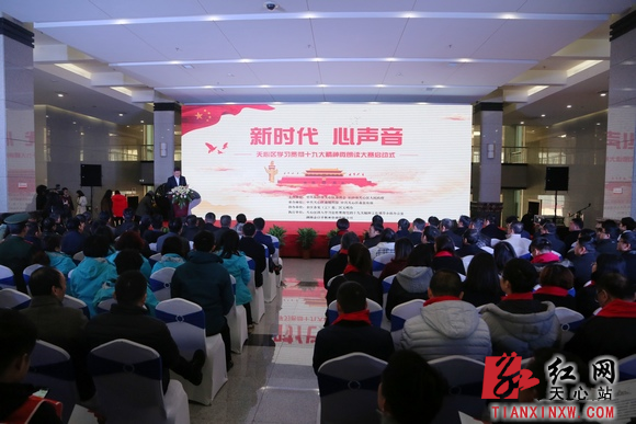 为进一步深入学习好、宣传好、贯彻好党的十九大精神,2017年12月20日,由中共长沙市天心区委员会、长沙市天心区人民政府主办,中共天心区委组织部、中共天心区委宣传部承办的天心区“新时代 心声音”学习贯彻十九大精神微朗读大赛正式启动。区委书记朱东铁,区委副书记、区长谢进以及区四大家全体县级领导和全区各党(工)委、“六进”代表参加启动仪式。本次大赛面向全区的党员干部、离退休党员、社区群众展开,所有人员可通过“微天心”官方公众号开设的“微朗读大赛”链接,直接录音上传作品。同时,也可在太平老街、天心区政府机关大院以及友阿奥特莱斯所设立的朗读亭,录制作品并上传。