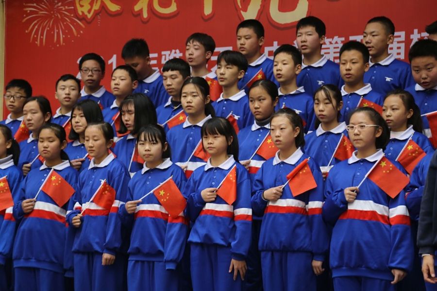 在班主任老师的指引下,台上同学整齐划一,精神抖擞,尽情歌唱;台下同学井然有序,屏息凝神,静静聆听。合唱的歌声传来,你听,它时而高亢有力如大河奔流,时而悠扬婉转如小溪细流,时而雄浑,时而清脆……齐唱、独唱、伴舞、朗诵,同学们合唱的表现形式繁多,《红旗飘飘》、《歌唱祖国》、《龙的传人》、《打靶归来》、《没有共产党就没有新中国》……一首首红色经典在少年们口中活了起来,同学们演绎出当代民族自豪感,一首首经典作品被赋予时代的色彩,有了新的生命。