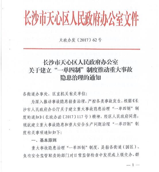 天政办发[2017]62号关于建立“一单四制”制度推动重大事故隐患治理的通知.pdf