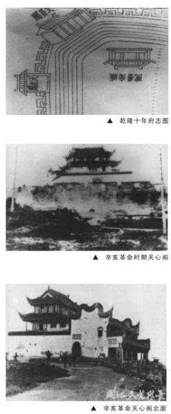 清乾隆初,长沙城东南上有天心(又称天星)、文昌两阁,分列左右,今天心阁主阁所在为文昌阁。乾隆四十二年(1777),因天心阁废圮,乃重修于文昌阁前。当时,曾任《四库全书》总阅官的大学者李汪度出任湖南学政,他所撰《重修天心阁记》云:“会城东南隅,城脉隆起,崇垣跨其脊……冈形演迤,遥与岳麓对,上建天心、文昌二阁以振其势,后乃额天心于文昌,而省其一焉。”此后,天心阁一直被视为古城长沙的标志,为官民所重。嘉庆、咸丰、同治几朝均有修葺。清末学者黄兆枚为主阁撰写联,概括了建阁的初衷:四面云山都入眼;万家烟火总关心。