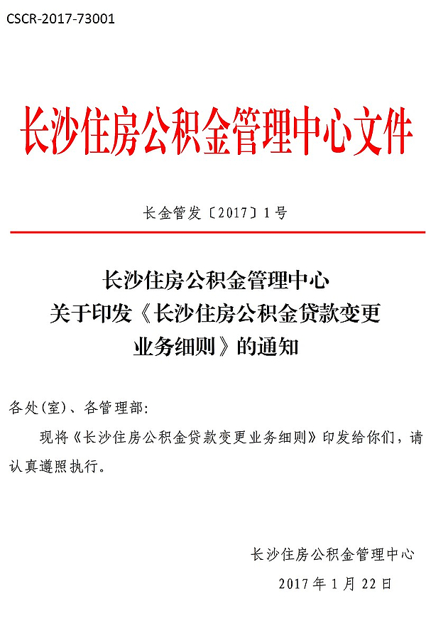 长沙住房公积金管理中心关于印发《长沙住房公积金贷款变更业务细则》的通知