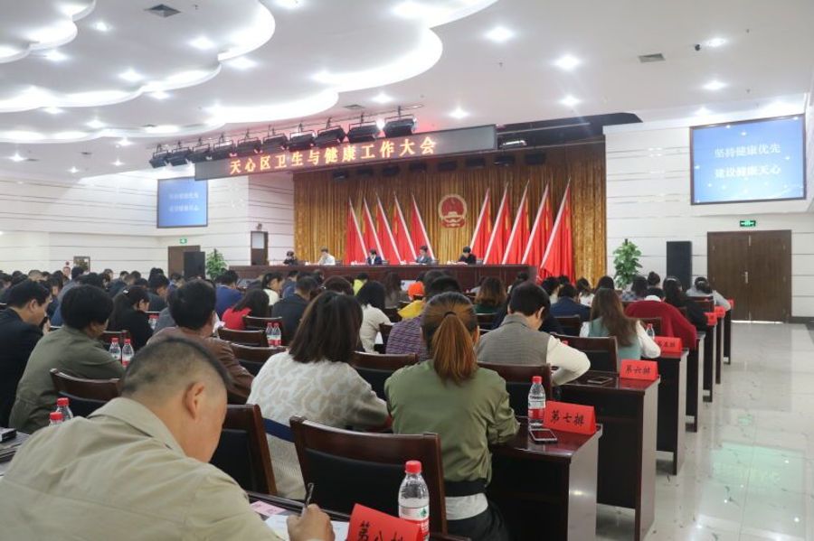 2017年10月31日上午,天心区委副书记、区长谢进组织召开全区卫生与健康工作大会,贯彻落实党的十九大精神,部署全面推进健康天心建设有关工作。会议由区委副书记朱远红主持,相关区领导,区直部门主要负责人,各街道主要负责人、分管负责人、卫计办主任,区卫计局班子成员及局直二级机构主要负责人,各社区(村)书记,各街道社区卫生服务中心负责人,驻区省市医院代表等共计300余人参加会议。