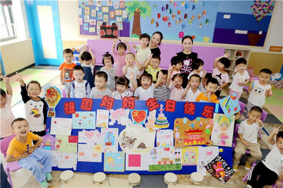 孩子们用满满的祝福为祖国68周年华诞庆生