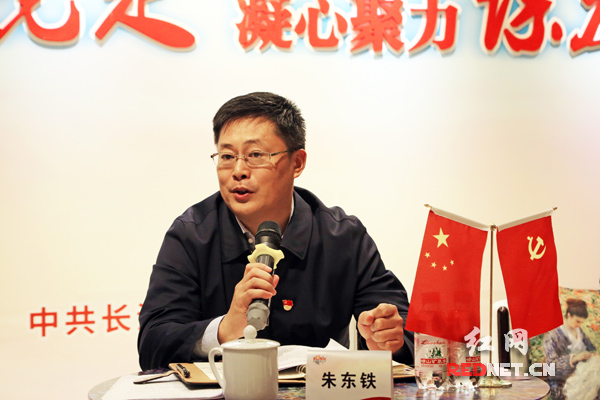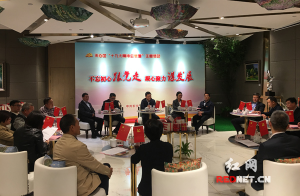 天心区委书记朱东铁与在场人员一同分享十九大精神学习心得。