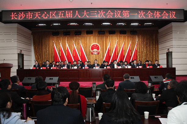 2017年12月27日上午9:00,天心区五届人大三次会议第一次全体会议在区机关三楼大会议室隆重召开,与会人员全体起立,奏唱国歌。大会由朱东铁、谢进、朱远红、于献、夏艳兰、张界贻、曾卫国、李曦、颜小平、谭文敏、邱忠献、张少林担任执行主席,区人大常委会主任于献主持,市纪委派驻天心区巡回督查组组长、市委巡查组组长詹立明应邀出席,来自全区各战线、各领域的人大代表参加了会议。