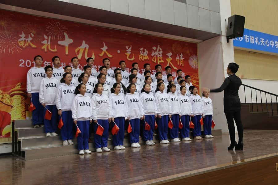 2017年12月22日下午,雅礼天心中学第五届校园文化艺术节红歌合唱比赛在该校体艺馆二楼唱响,本次合唱比赛的主题为“献礼十九大,艺融雅天情”,学校初一、初二年级共28个班集体参加演出。