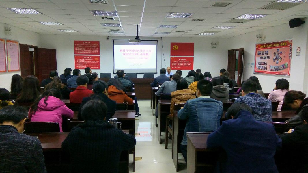 2017年11月17日下午,天心区人社局邀请长沙市委党校教务处副处长、教授金庭碧宣讲十九大精神,金教授以《新时代中国特色社会主义政治宣言和行动纲领》为题,对学习贯彻党的十九大报告精神进行了专题辅导。