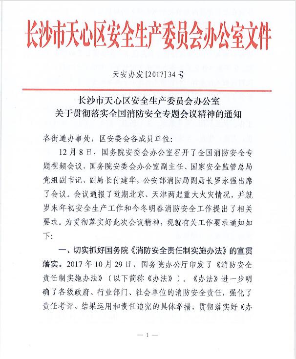 关于贯彻落实全国消防安全专题会议精神的通知