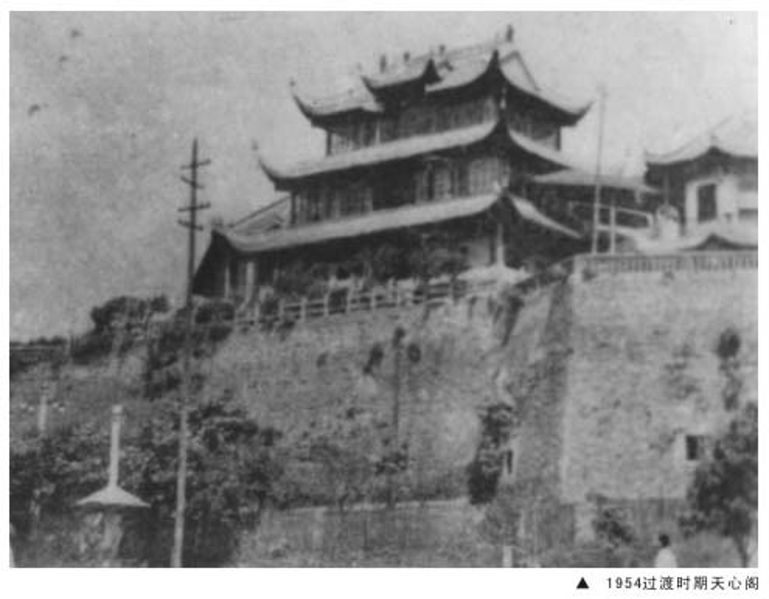 清乾隆初,长沙城东南上有天心(又称天星)、文昌两阁,分列左右,今天心阁主阁所在为文昌阁。乾隆四十二年(1777),因天心阁废圮,乃重修于文昌阁前。当时,曾任《四库全书》总阅官的大学者李汪度出任湖南学政,他所撰《重修天心阁记》云:“会城东南隅,城脉隆起,崇垣跨其脊……冈形演迤,遥与岳麓对,上建天心、文昌二阁以振其势,后乃额天心于文昌,而省其一焉。”此后,天心阁一直被视为古城长沙的标志,为官民所重。嘉庆、咸丰、同治几朝均有修葺。清末学者黄兆枚为主阁撰写联,概括了建阁的初衷:四面云山都入眼;万家烟火总关心。